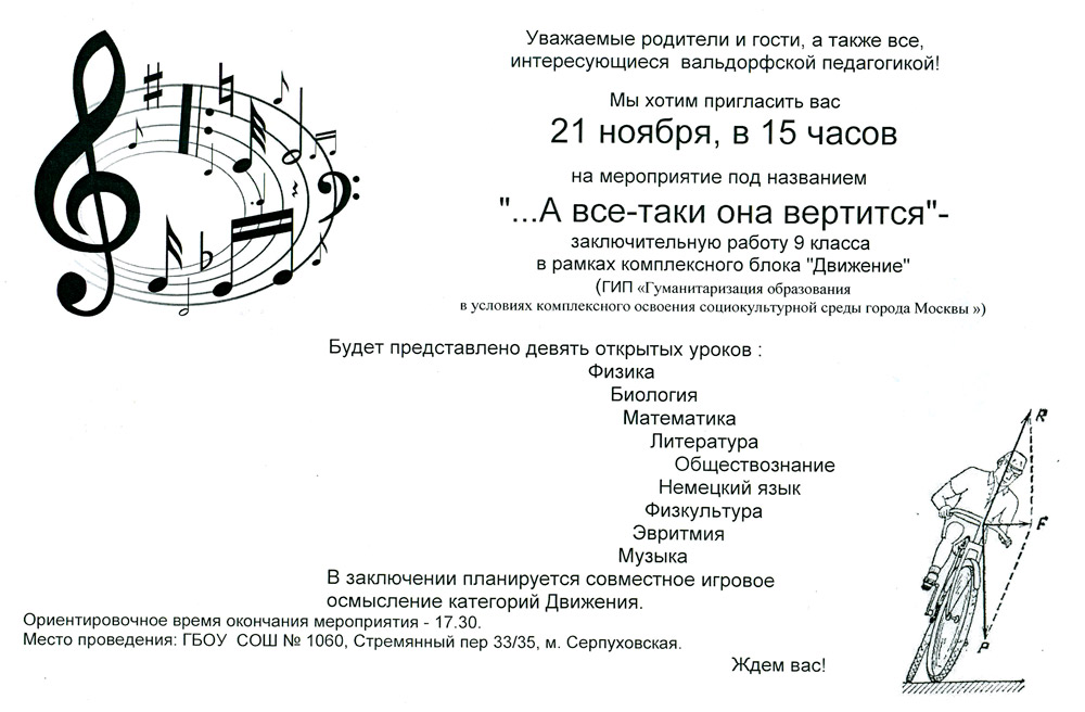 21 ноября 2014 в нашей школе состоялась презентация комплексного блока «Движение». Этот проект учителей старшей школы и учеников 9 класса – очередной этап работы школы в рамках Городской инновационной площадке «Гуманитаризация образования в условиях комплексного освоения социокультурной среды города Москвы».