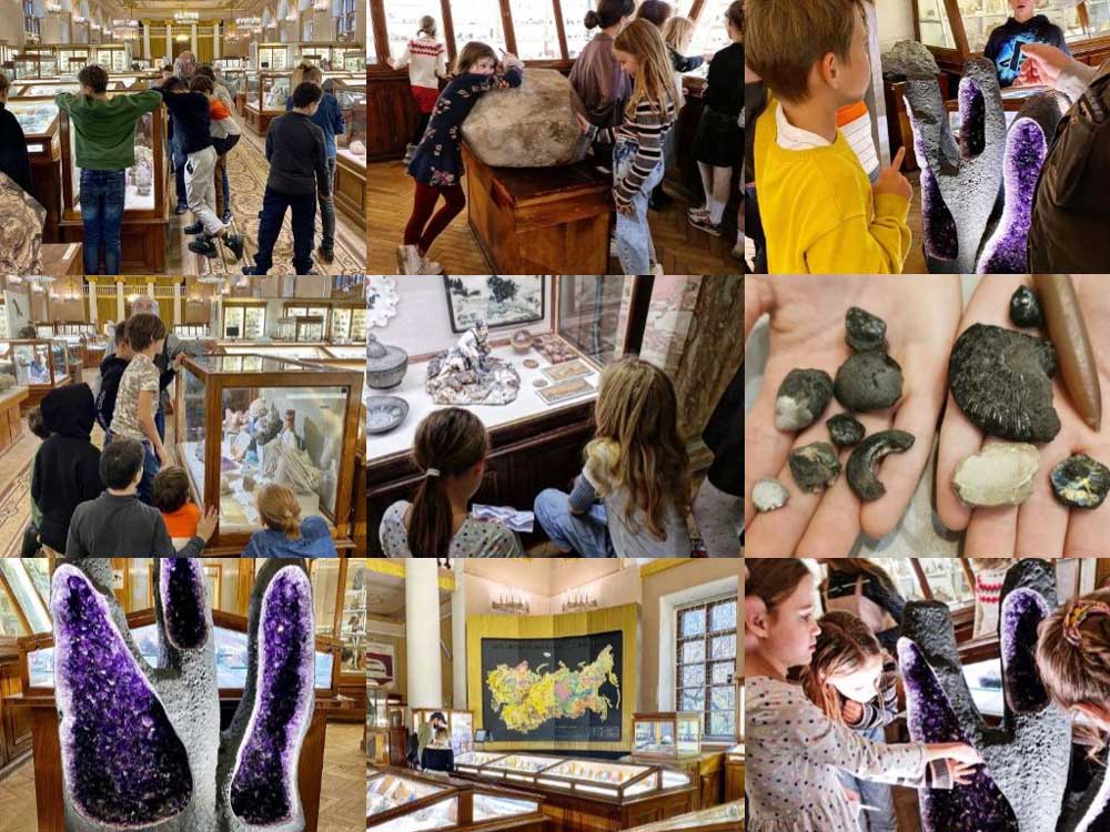 На первом уроке мы рассматривали камни, разговаривали о составе земли, обсуждали состав минералов. А в конце эпохи ходили в музей минералогии: там были очень добрые экскурсоводы, которые увлекательно рассказывают о камнях, многие экспонаты можно трогать руками и есть совсем удивительные в виде веток дерева.